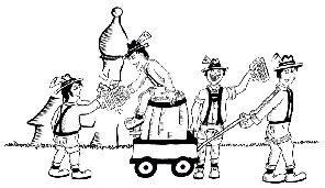 heute bei Burschenverein üblich in Lederhosen. Sie gruppieren sich um einen Tisch,
