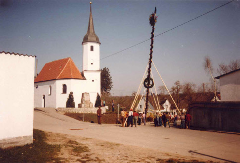 1975 belebte die Landjugend den seit dem Zweiten Weltkrieg nicht mehr geübten Brauch wieder, einen Maibaum aufzustellen. Bereits im Winter wurden die Motivtafeln mit den Zunftsymbolen der in der Gemeinde vertretenen Handwerker und die Halterungen hierfür angefertigt. Der erste Maibaum wurde im Burgstaller Gemeindewald geschlagen. Die Chronik berichtet darüber wörtlich: „Am Morgen des 1. Mai war dann so ziemlich die ganze Gemeinde auf den Füßen. Der Maibaum wurde auf einem Wagen an die Stelle im Ort gebracht, wo bereits das Loch, in dem er eingegraben werden sollte, ausgehoben war. Das Aufstellen ging ziemlich reibungslos